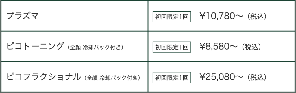 値段は他クリニックと比べても相場くらいな印象。おもてなしを重視しているそうで、他のクリニックに比べて施術時間長め?毎回、看護師さんがスキンケア指導してくださいます。