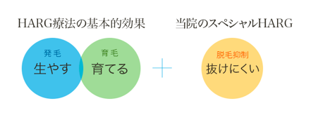 HARG(ハーグ)療法は発毛・育毛という2つの効果で、内服薬だけでは生えなくなった薄毛改善の期待ができます。