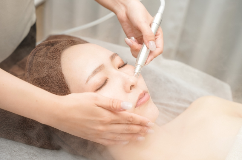 フェイシャルエステでは、日頃の蓄積された毛穴汚れを除去した後、NEOイオン導入・光フェイシャルとフルコースで肌をケア。施術終わりのモチモチ感は、パールプラスならではの気持ちよさです。